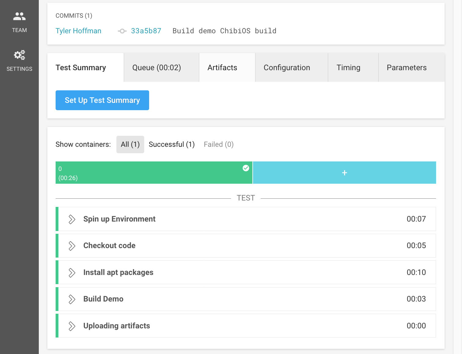 Last but not least, we want to stash the resulting elf file so we can download it later. This is especially useful if you want to test a previous build of your codebase without having to recompile it yourself.
